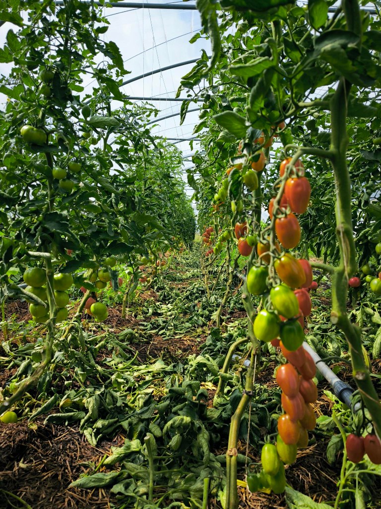 Die kühler werdenden Nächte und feuchten Tage führen dazu, dass wir jetzt bei den Tomaten großzügig von unten her mit dem Entblatten begonnen haben!